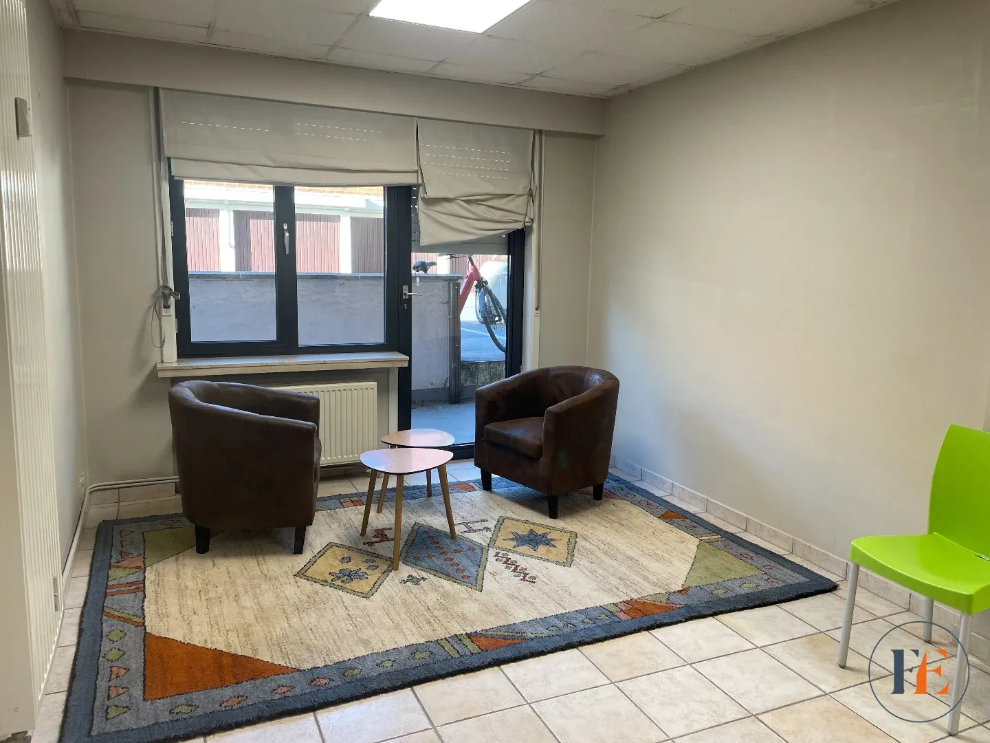 Dit kantoor bestaat uit een wachtzaal, toiletten, keukentje, en 1 of 2 burelen met aangrenzend een kleine buitenruimte.