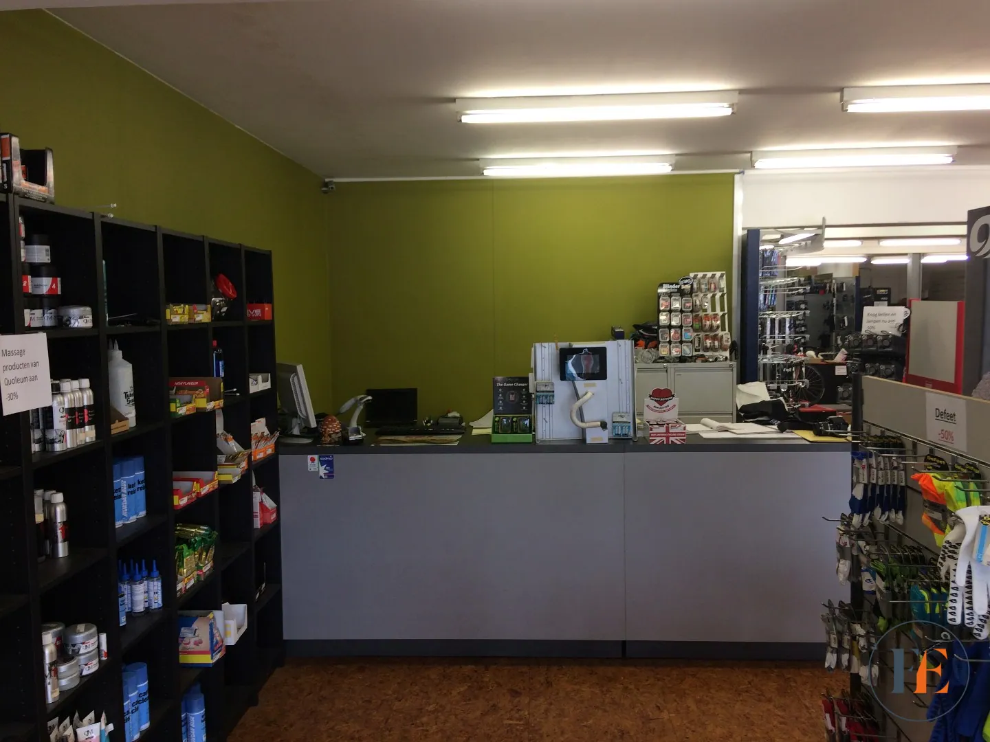 Dit gebouw bestaat uit een handelszaak van 300m² momenteel verhuurd als fietsenwinkel met parking en garage.